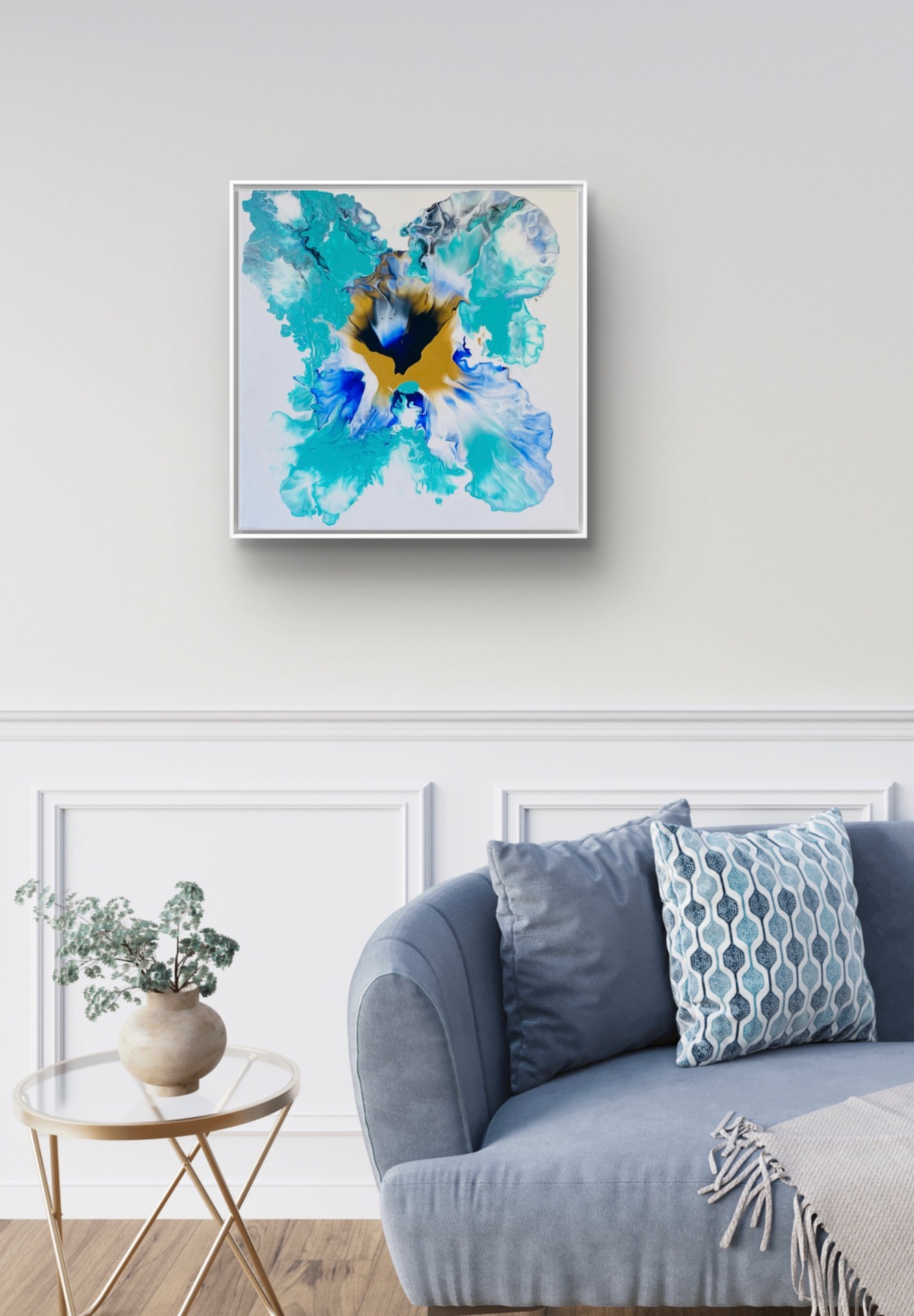 Exploding Colors: white, mint green, blue and goldSize 50 x 50 cmComes with a certificate of authenticity Sold without the frame