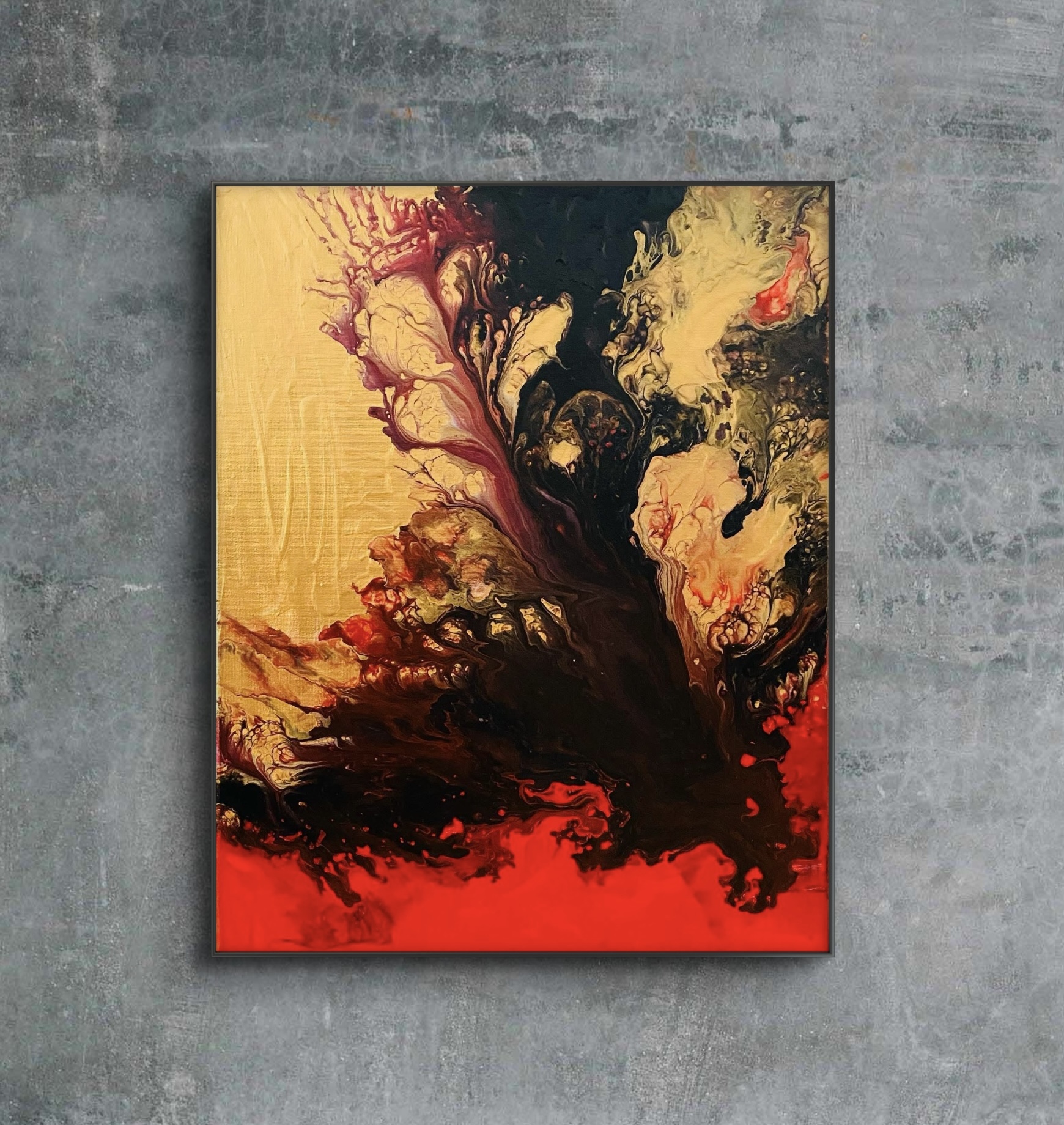 Gold rush Colors: gold, black and redSize: 40 x 50 cmComes with a certificate of authenticity Sold without the frame